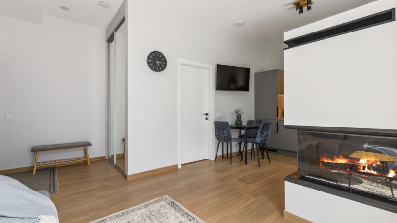 Apartamentuose galėsite naudotis visais patogumais, kurių reikia trumpalaikės viešnagės metu: pilnai įrengta virtuve, vonios kambariu su dušu, miegamajame yra patogi dvigulė lova, švari patalynė, svetainės zonoje patogi sofa, o jaukumo suteiks židinys. Aparatmentuose taip pat rasite skalbimo mašiną su džiovykle, greitą Wi-Fi, televizorių, taip pat yra parkavimo vieta. Apartamentuose gali apsistoti iki 4 asmenų.