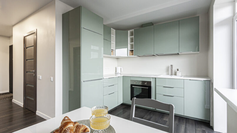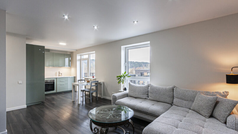 Bute jūsų laukia atvira, erdvi svetainės ir virtuvės zona, kurioje malonu atsipalaiduoti po dienos mieste. Patogi sofa kviečia įsitaisyti su knyga ar filmu, o pilnai įrengta virtuvė turi viską, ko gali prireikti – kaitlentę, orkaitę, indaplovę, šaldytuvą, virdulį, indus ir maisto gaminimo reikmenis. Nesvarbu, ar gaminsite jaukius pusryčius, ar vakarienę – viskas paruošta Jūsų patogumui.