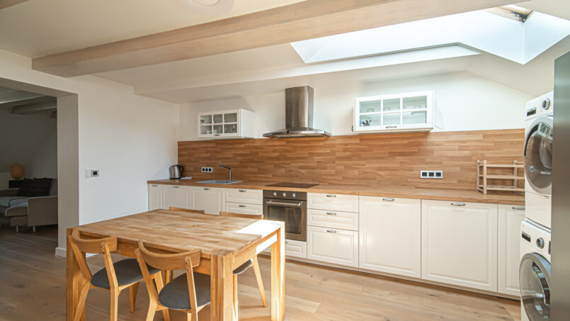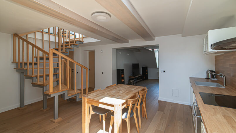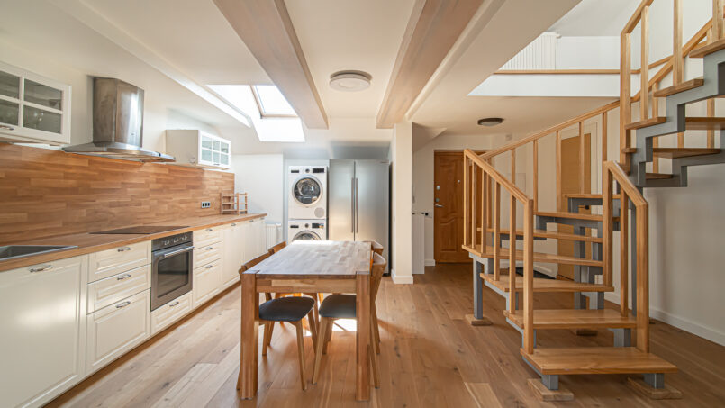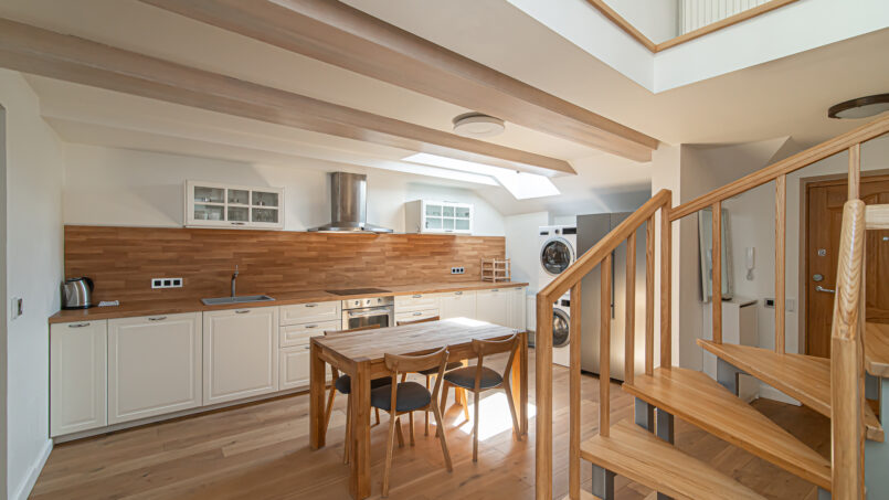Dviejų aukštų apartamentai nuomai Vilniuje, Žemaitijos gatvėje – tai puiki vieta patirti senamiesčio gyvenimą iš arti. Čia apsistoję būsite pačiame Vilniaus senamiestyje, kur už kelių žingsnių laukia siauros gatvelės, jaukios kavinės, parduotuvėlės ir istoriniai miesto objektai. Tai erdvė, kurioje susilieja komfortas ir miesto dvasia – idealu tiek savaitgalio pabėgimui, tiek ilgesnei viešnagei.